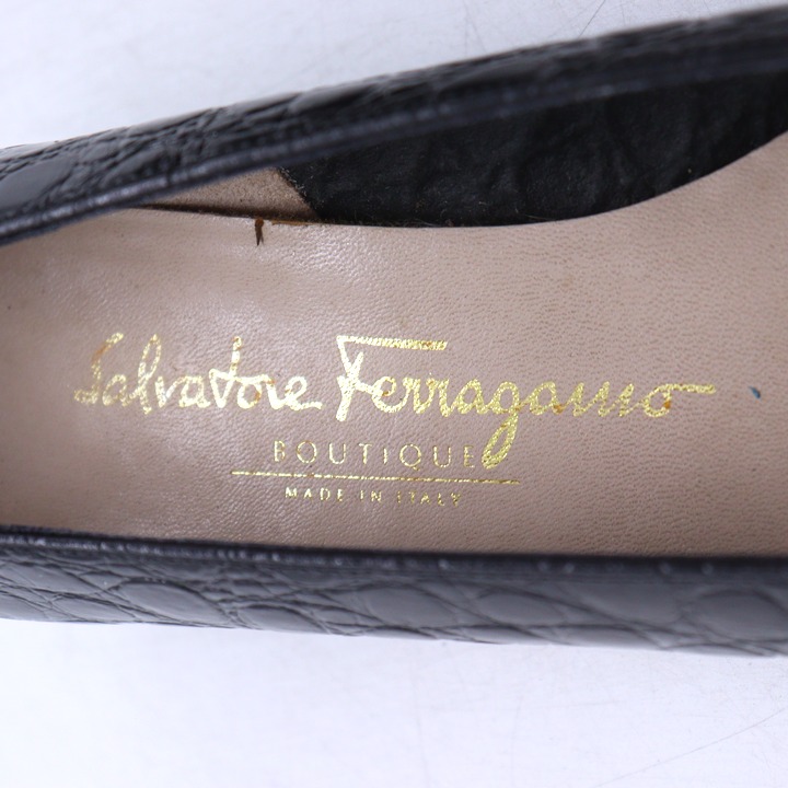 サルヴァトーレフェラガモ パンプス ヴァラリボン シューズ 靴 イタリア製 黒 レディース 5.5サイズ ブ...
