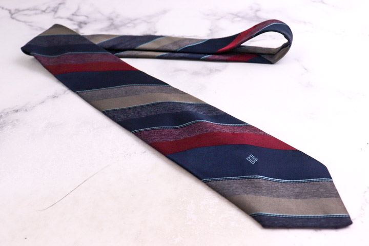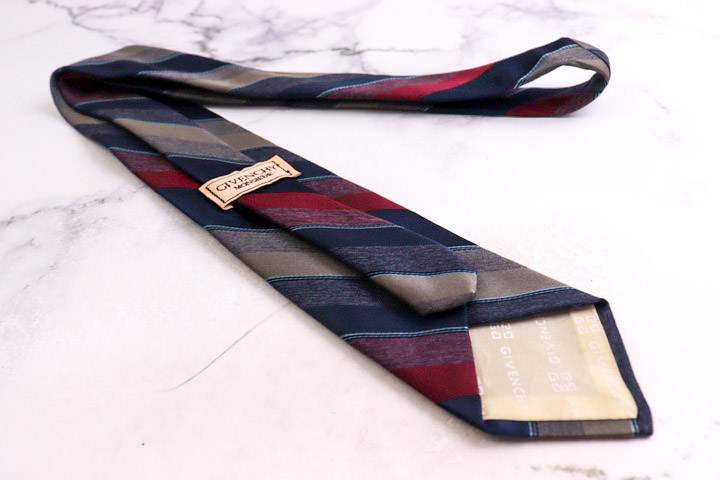 ジバンシィ ブランド ネクタイ シルク ストライプ柄 ロゴグラム PO メンズ ネイビー GIVENCHY 【中古】