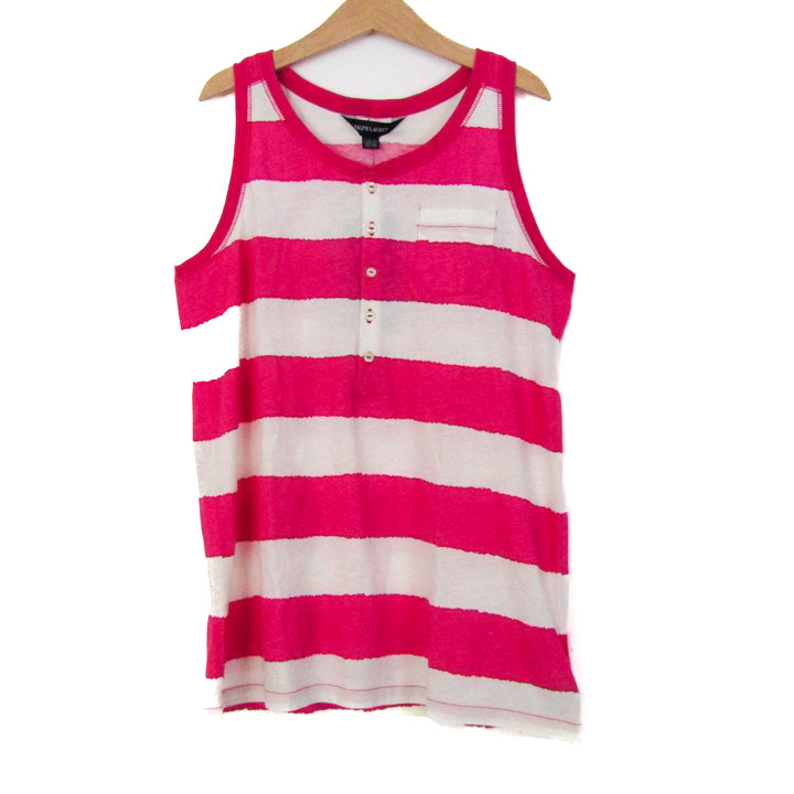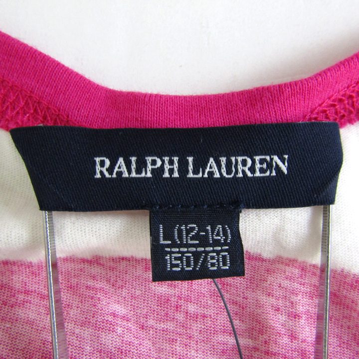 ラルフローレン タンクトップ ノースリーブ シャツ トップス 未使用 キッズ 男の子用 L(12-14)サイズ ピンク×白 RALPH LAUREN 【中古】
