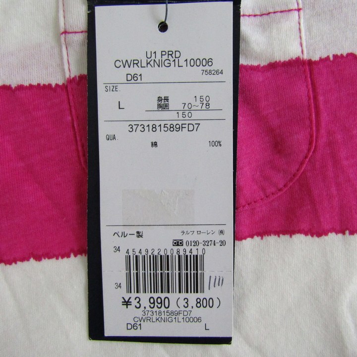 表記サイズ:L(12-14)