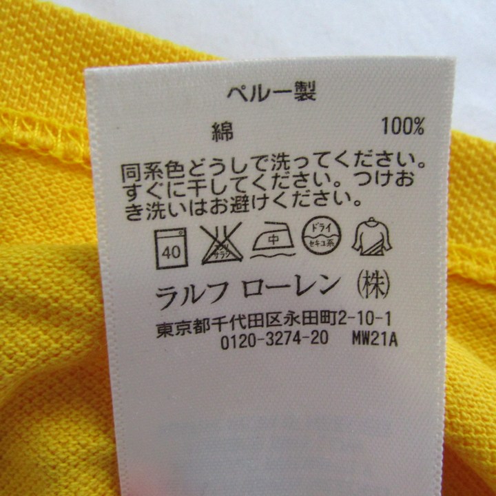 ポロラルフローレン ポロシャツ トップス 半袖 コットン キッズ 男の子用 3/3T 100/56サイズ 黄×緑 POLO RALPH LAUREN 【中古】
