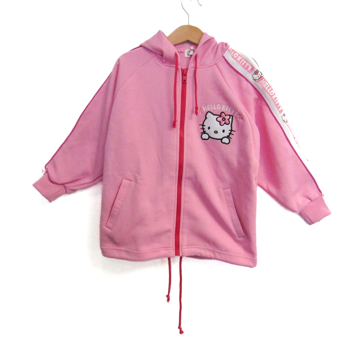 ハローキティ パーカー トップス 長袖 ジップアップ スウェット キッズ 女の子用 110サイズ ピンク HELLO KITTY 【中古】