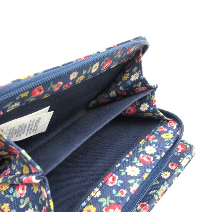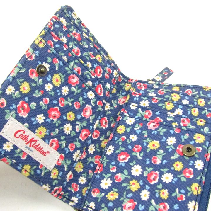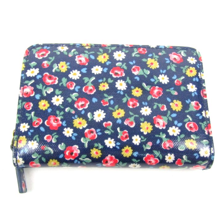 キャスキッドソン 二つ折り財布 花柄 ウォレット ブランド レディース ネイビー Cath Kidston 【中古】