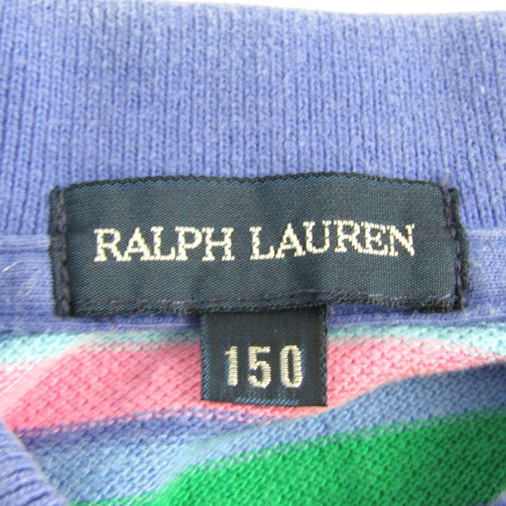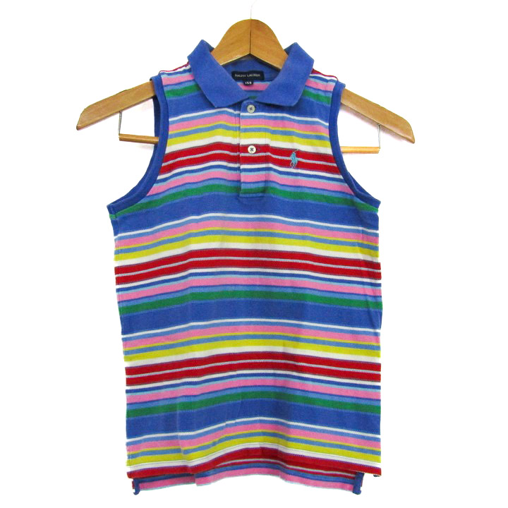 ラルフローレン ポロシャツ トップス ノースリーブ ボーダー柄 キッズ 男の子用 150サイズ 青×赤×緑 RALPH LAUREN 【中古】