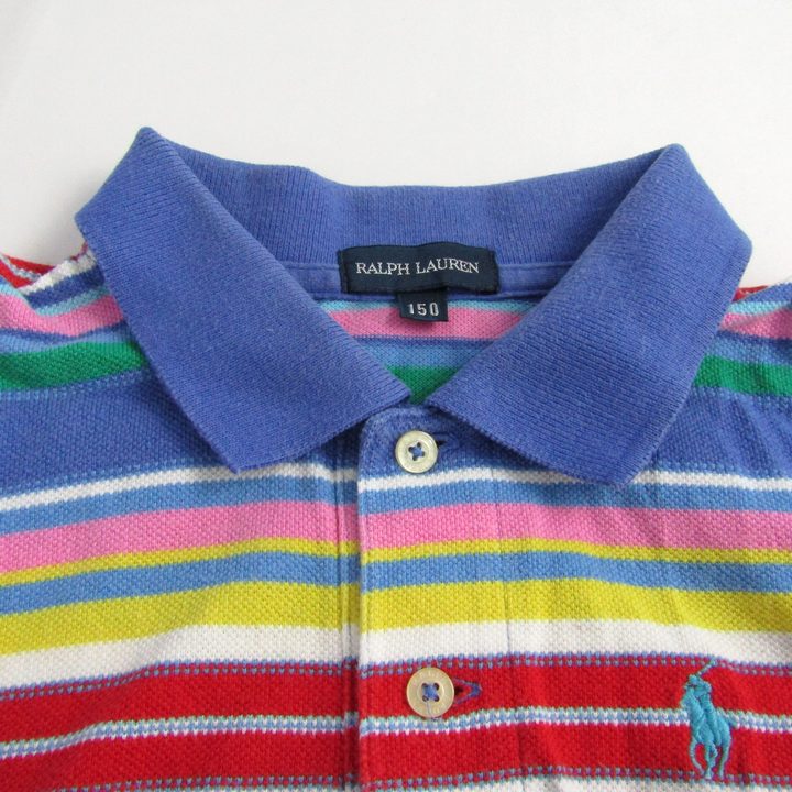 ラルフローレン ポロシャツ トップス ノースリーブ ボーダー柄 キッズ 男の子用 150サイズ 青×赤×緑 RAL...