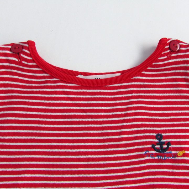 ファミリア ワンピース トップス ノースリーブ ボーダー柄 キッズ 女の子用 110サイズ 赤×白 Familiar 【中古】