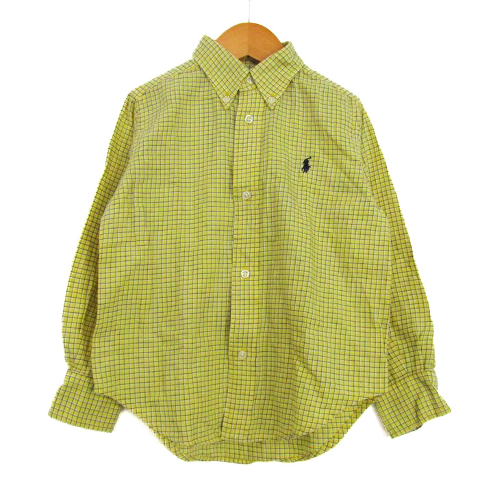 ラルフローレン 長袖シャツ トップス ボタンダウン チェック柄 キッズ 男の子用 3/3Tサイズ 黄×紺×白 RALPH LAUREN 【中古】