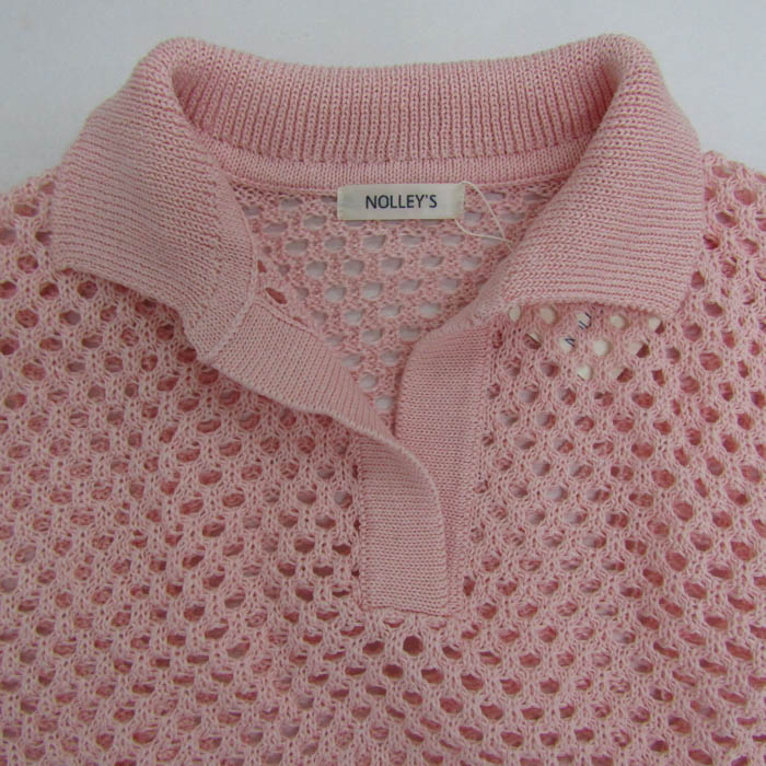 ノーリーズ ポロニット トップス 長袖 クロップド丈 透かし編み 未使用品 レディース 38サイズ ピンク NOLLEY'S 【中古】