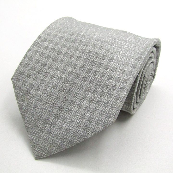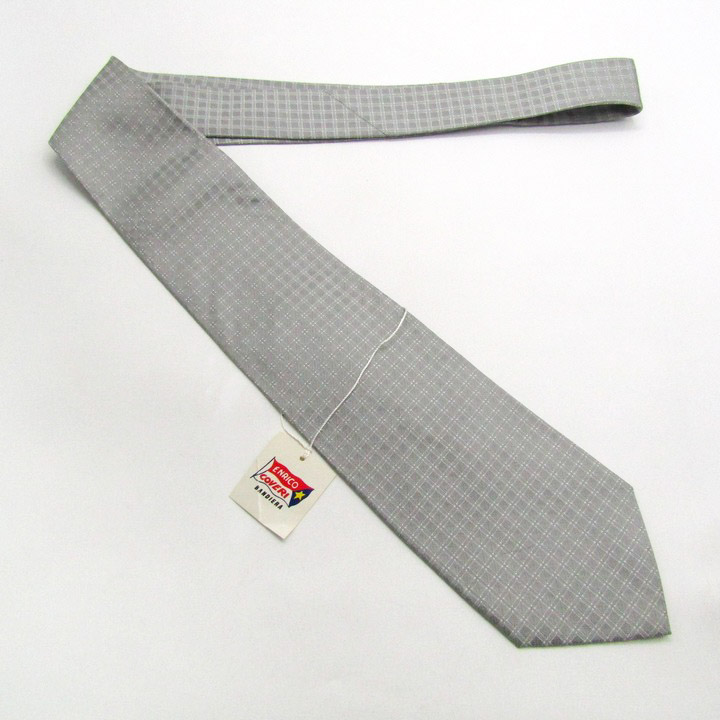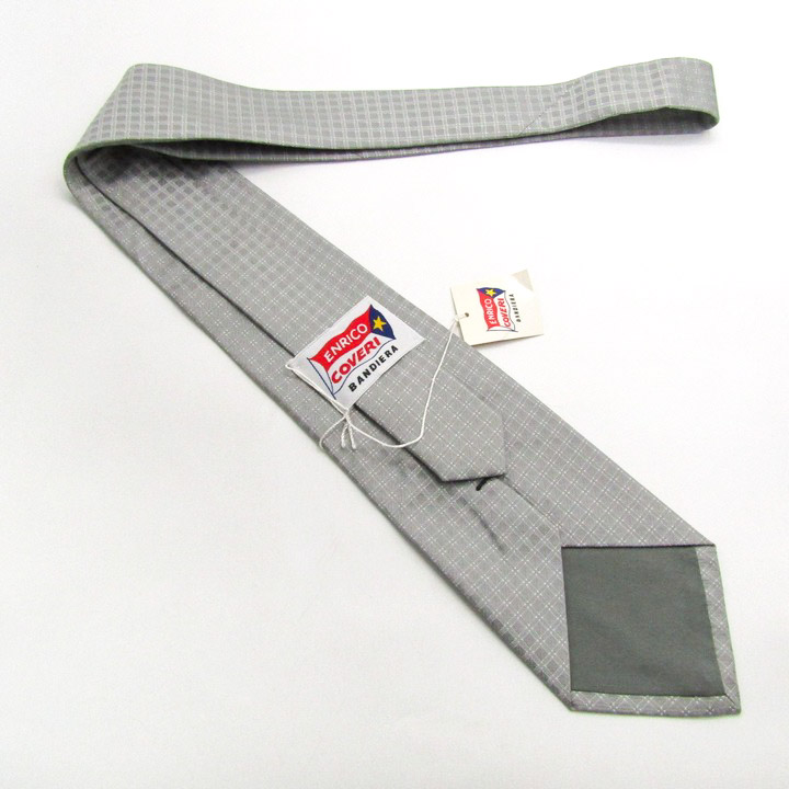 エンリコ・コベリ ブランド ネクタイ チェック柄 ドット シルク 日本製 未使用タグ付 PO メンズ グレー Enrico Coveri 【中古】