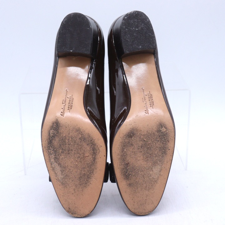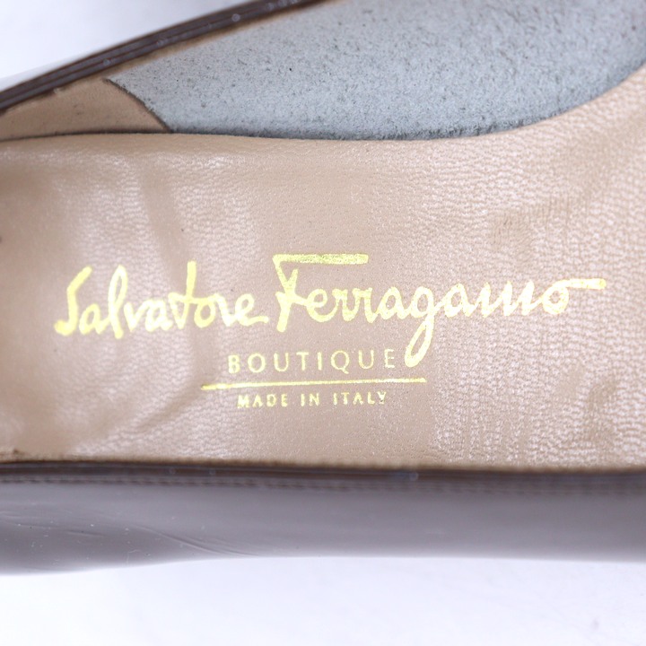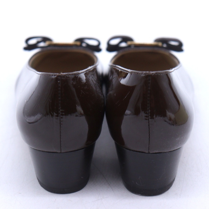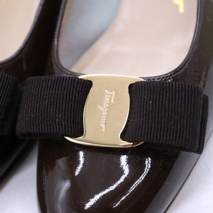 サルヴァトーレフェラガモ パンプス エナメル ヴァラ シューズ イタリア製 ブランド 靴 レディース 6dサイズ ブラウン Ferragamo 【中古】