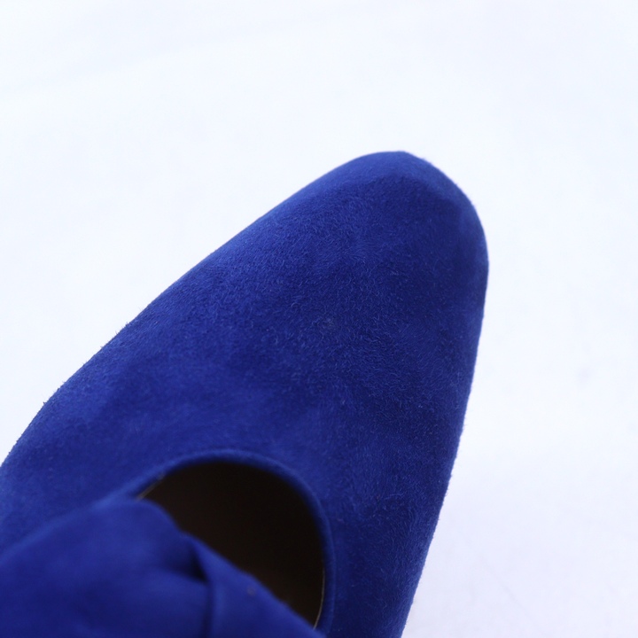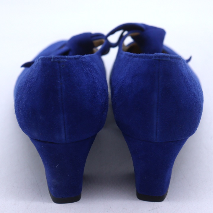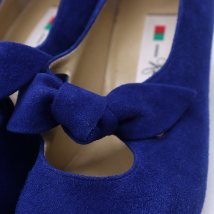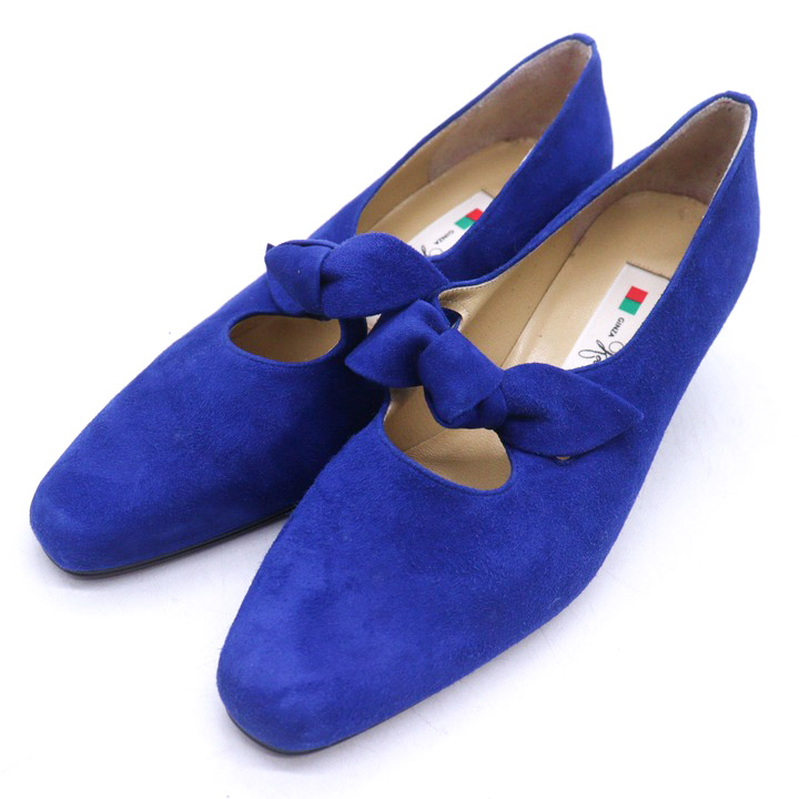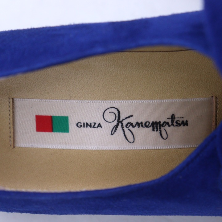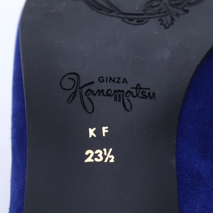 銀座カネマツ パンプス スエード スクエアトゥ リボン シューズ ブランド 靴 レディース 23.5サイズ ブルー Kanematsu 【中古】
