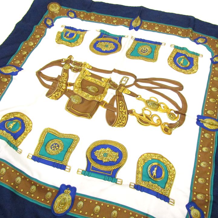 ロンシャン スカーフ イタリアンシルク 馬具柄 イタリア製 ブランド レディース ネイビー Longchamp 【中古】