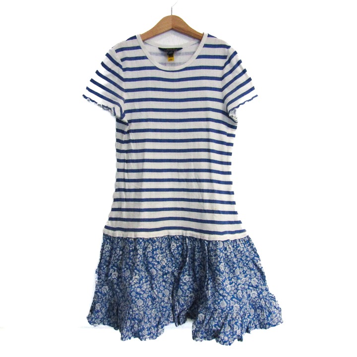 ポロラルフローレン 切替ワンピース トップス 半袖 ボーダー柄 キッズ 女の子用 L/G(12-14)サイズ 青×白...