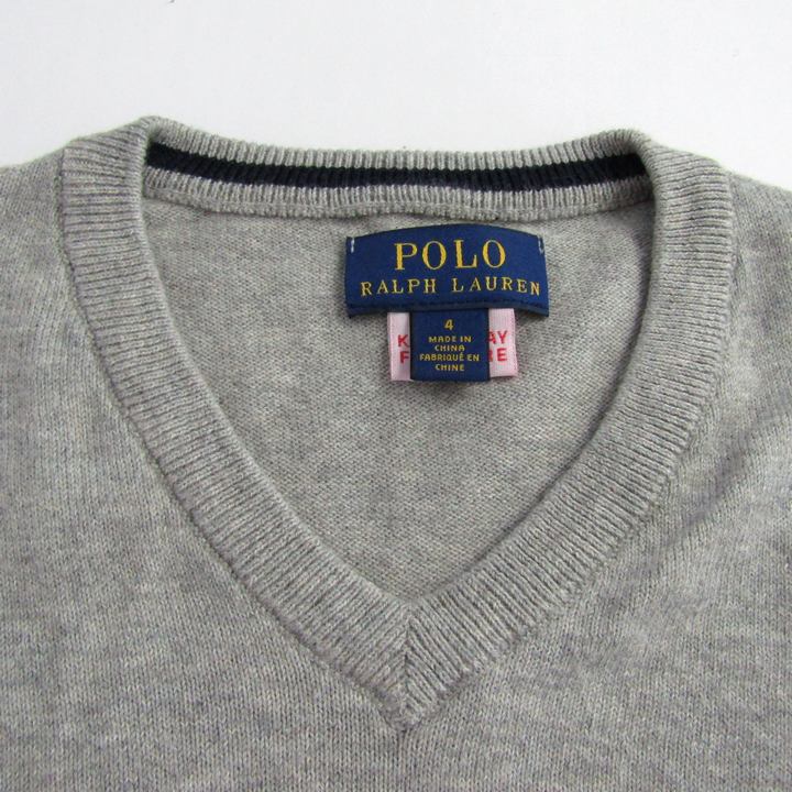 ポロラルフローレン セーター トップス 長袖 Vネックニット キッズ 男の子用 4サイズ グレー POLO RALPH LAUREN 【中古】