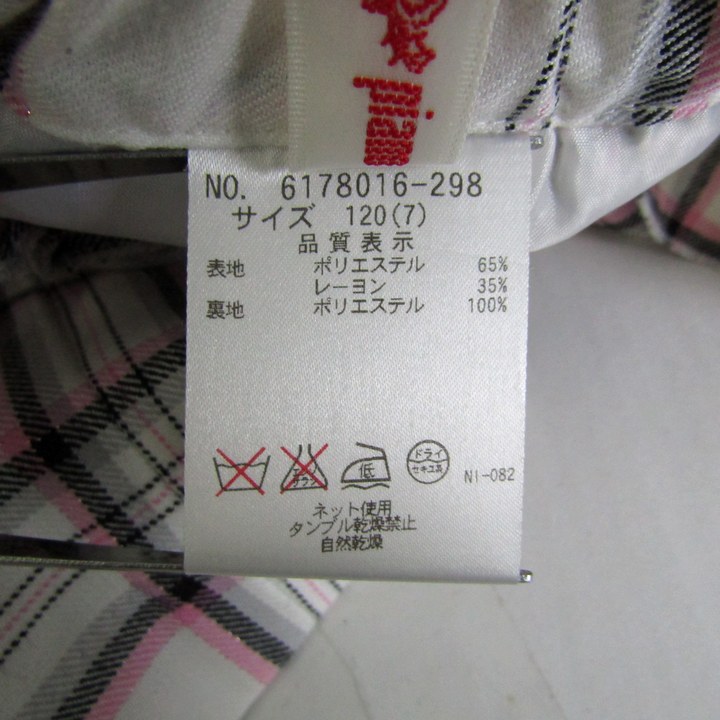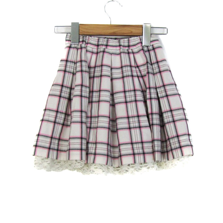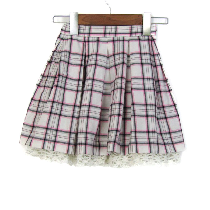 メゾピアノ フレアスカート チェック柄 レース ボトムス キッズ 女の子用 120サイズ ピンク×ホワイト×ブラック Mezzo Piano 【中古】