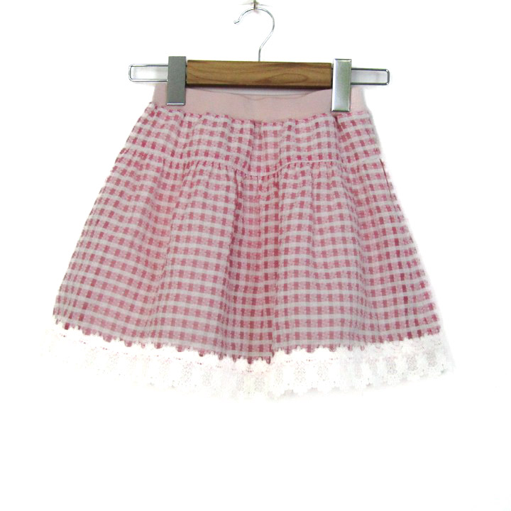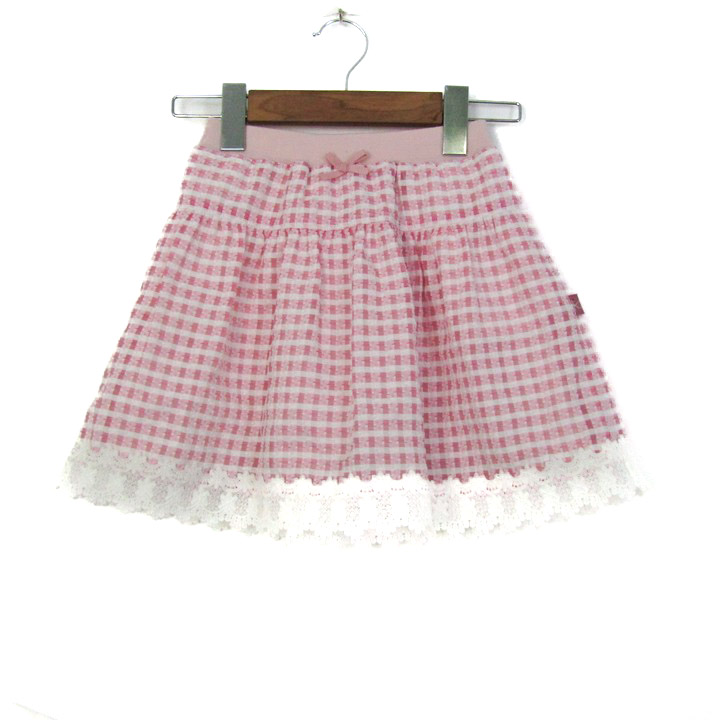 クミキョク フレアスカート チェック柄 レース ボトムス キッズ 女の子用 120サイズ ピンク 組曲 【中古】