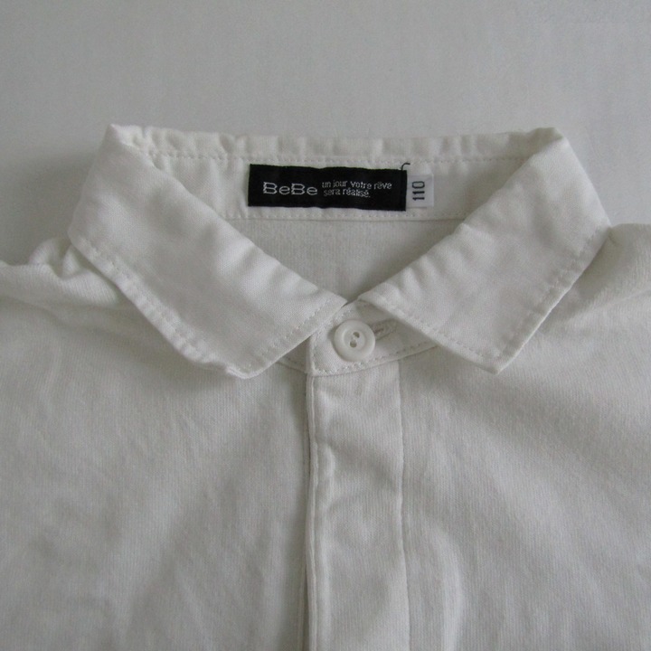 ベベ ポロシャツ 半袖 ラガーシャツ トップス キッズ 男の子用 110サイズ ホワイト×グリーン BeBe 【中古】