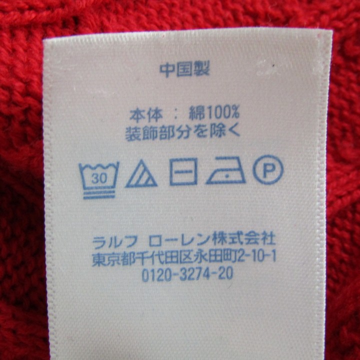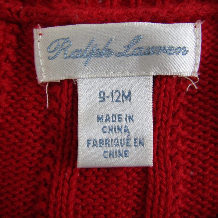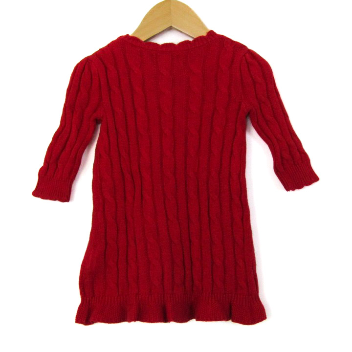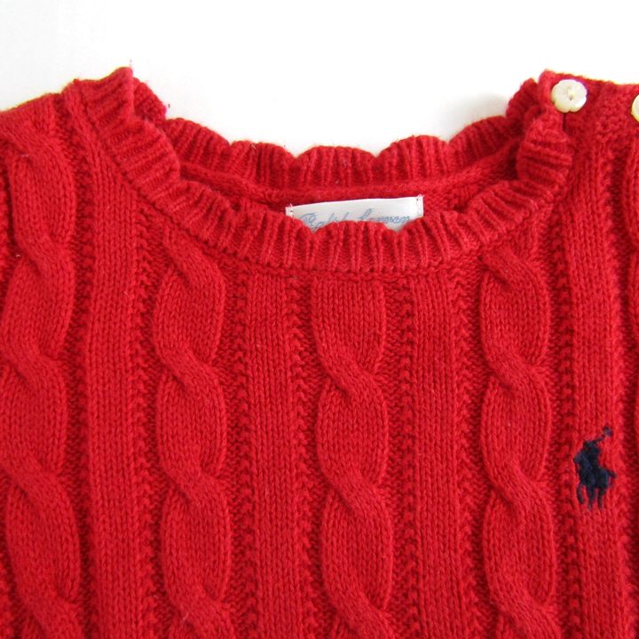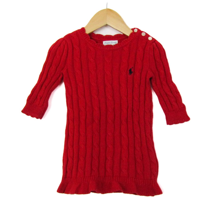 ラルフローレン ケーブルニットワンピース 長袖 トップス ベビー 女の子用 9-12Mサイズ レッド RALPH LAUREN 【中古】