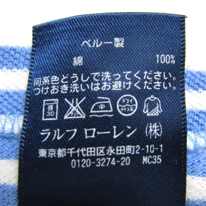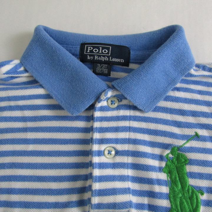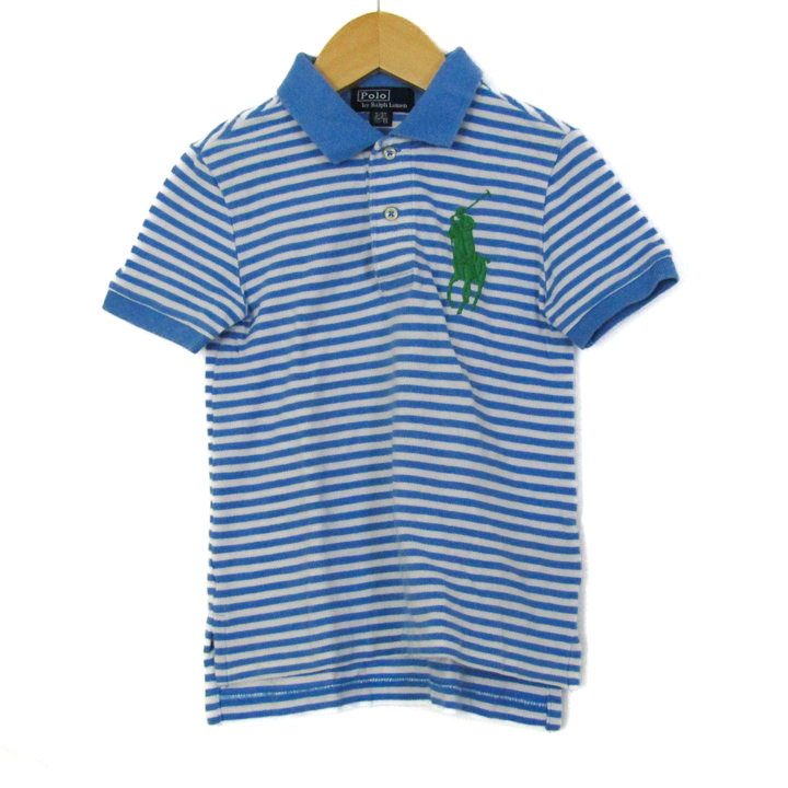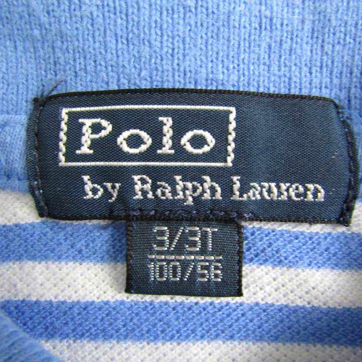 ポロバイラルフローレン ポロシャツ 半袖 ボーダー トップス キッズ 男の子用 3/3Tサイズ ブルー×ホワイト Polo by Ralph Lauren 【中古】