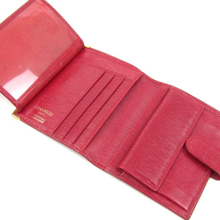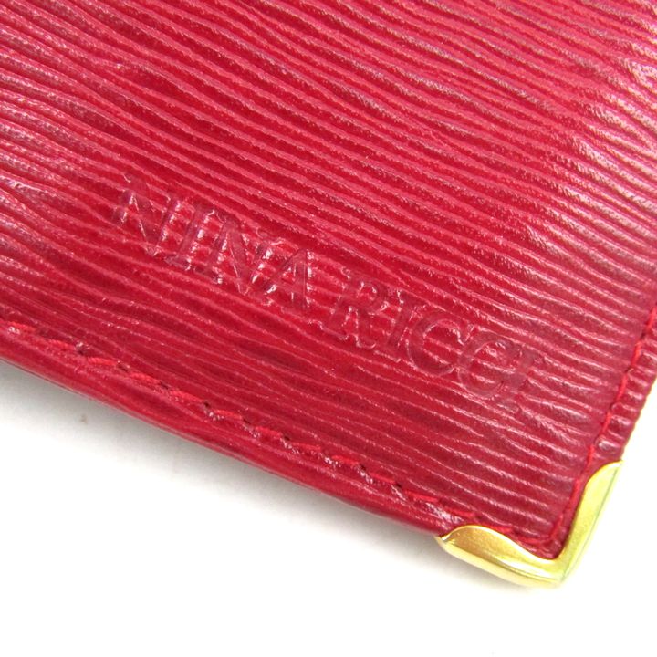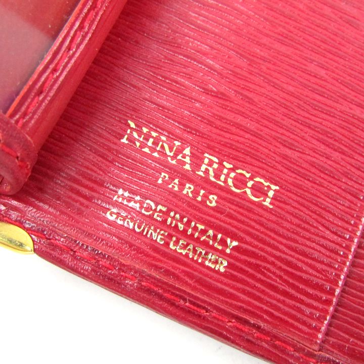 ニナリッチ 二つ折り財布 本革 レザー 型押し ウォレット イタリア製 ブランド レディース レッド NINA RICCI 【中古】