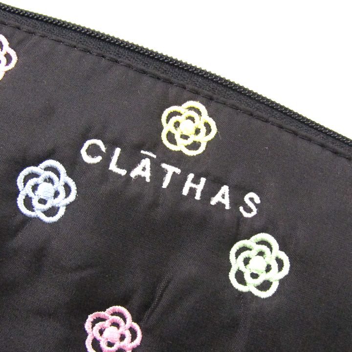 クレイサス ポーチ カメリア 花柄 マルチケース ブランド レディース ブラック CLATHAS 【中古】