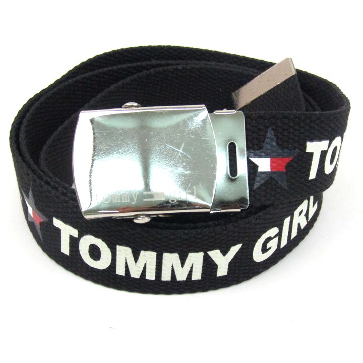 トミーガール ベルト キャンバス ロゴバックル ガチャベルト ブランド レディース ブラック tommy girl 【中古】