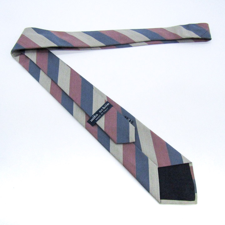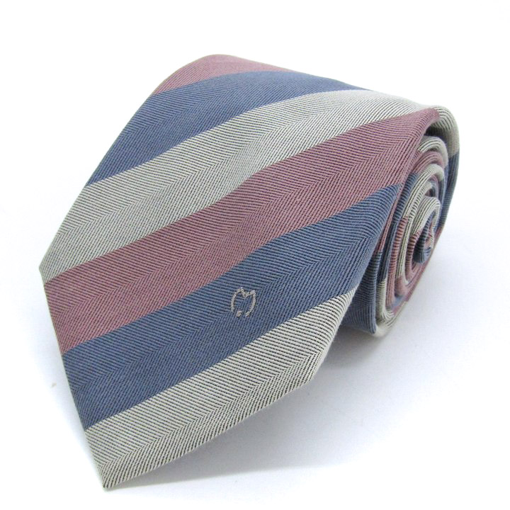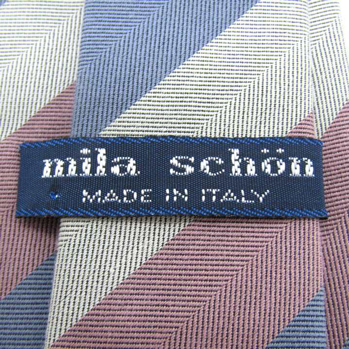 ミラショーン ブランド ネクタイ ロゴ ストライプ柄 ヘリンボーン柄 シルク コットン 伊製 PO メンズ グレー mila schon 【中古】