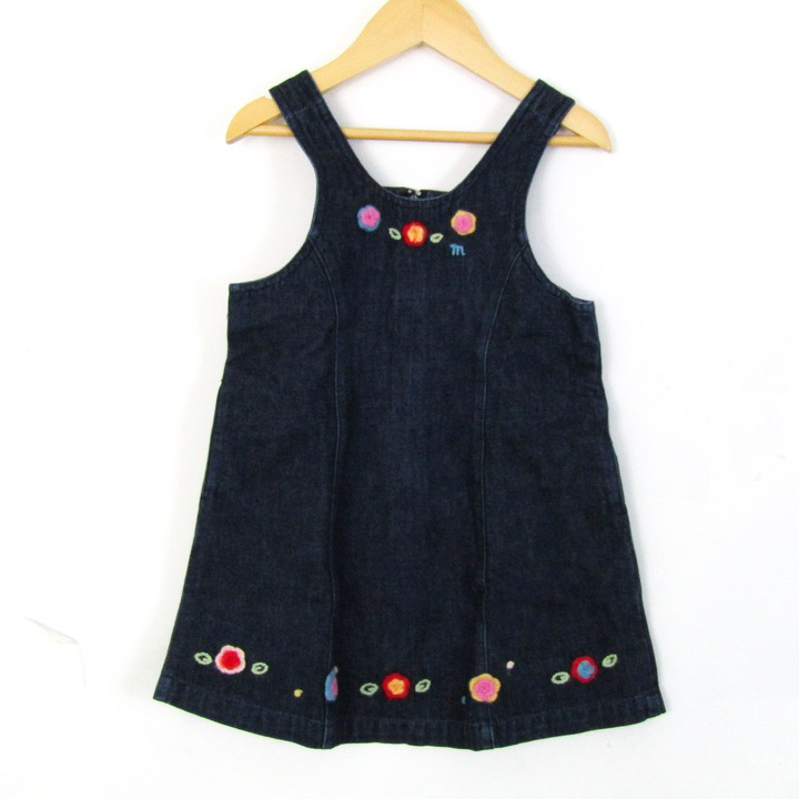 ミキハウス ジャンパースカート デニム 刺繍 キッズ 女の子用 100サイズ ネイビー×レッド×イエロー MIKI...
