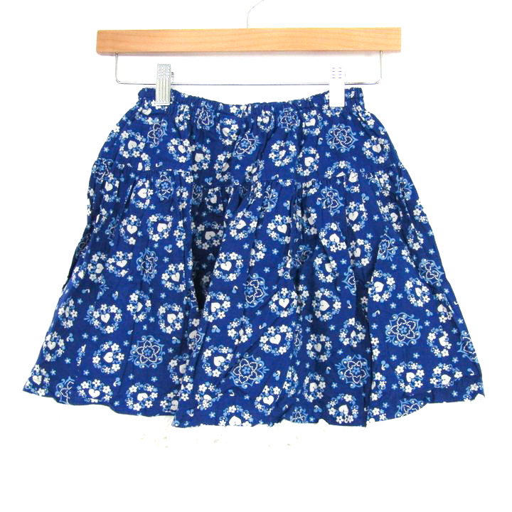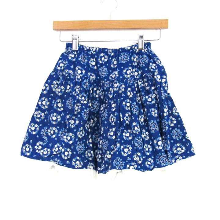メゾピアノ フレアスカート 花柄 レース ボトムス キッズ 女の子用 140サイズ ブルー×ホワイト Mezzo Piano 【中古】