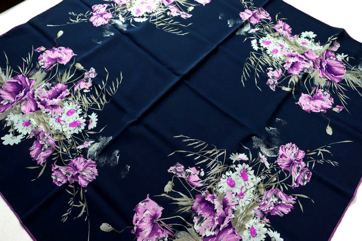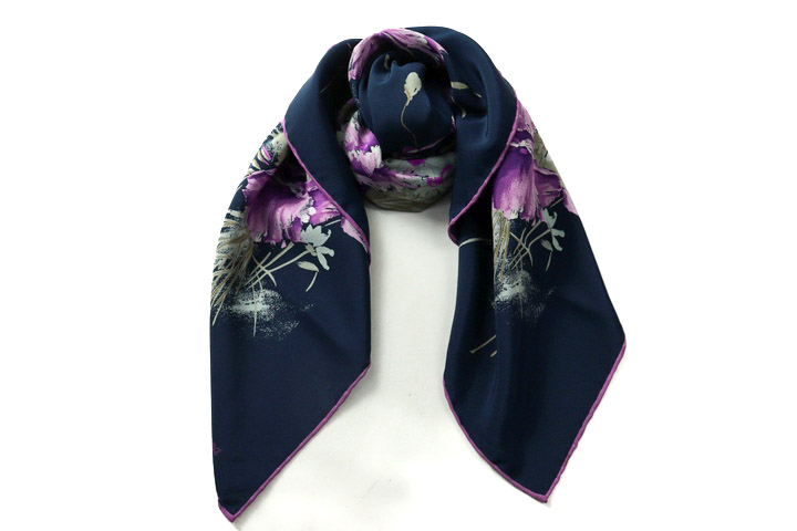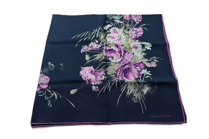 セリカラリアナ スカーフ ストール シルク 花柄 ブランド レディース ネイビー Serica Lariana 【中古】