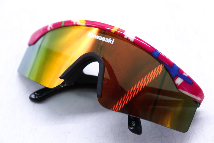 カワサキ スポーツサングラス ミラーレンズ フレーム ブランド アイウェア メンズ ピンク Kawasaki 【中古】