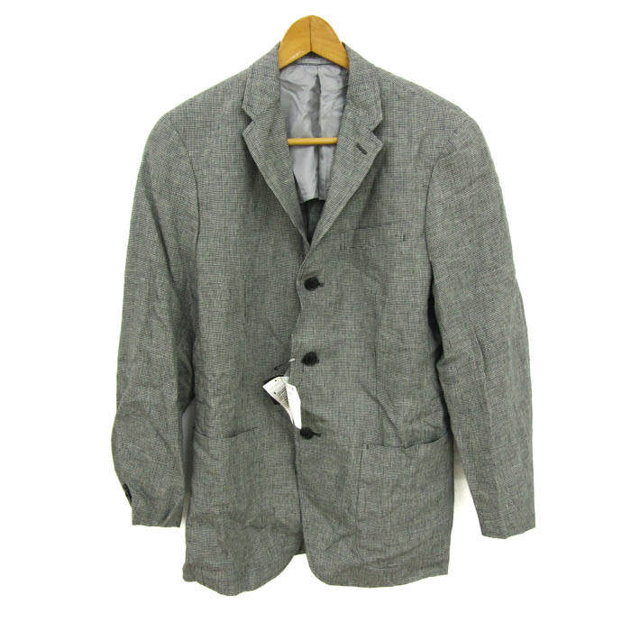 ユニクロ テーラードジャケット アウター プレミアムリネン 千鳥格子柄 未使用品 メンズ Mサイズ グレー UNIQLO 【中古】
