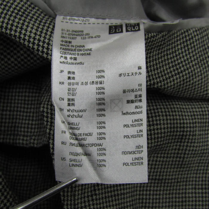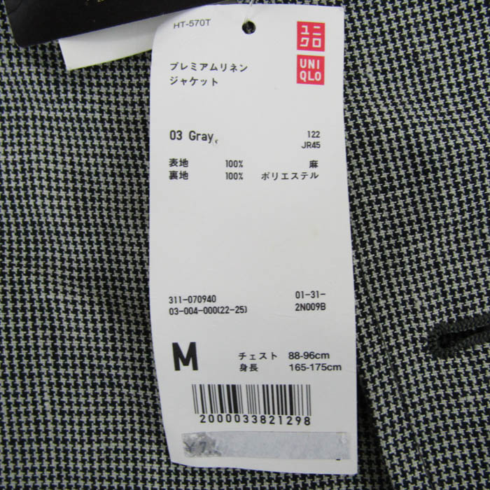 ユニクロ テーラードジャケット アウター プレミアムリネン 千鳥格子柄 未使用品 メンズ Mサイズ グレー...