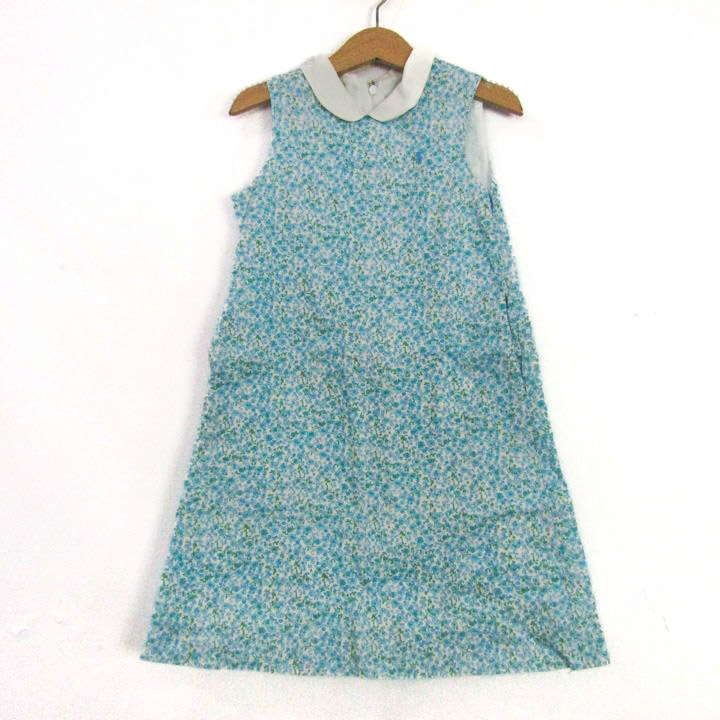 ラルフローレン ワンピース ノースリーブ コットン ブランド トップス キッズ 女の子用 120サイズ ブルー×ホワイト RALPH LAUREN 【中古】