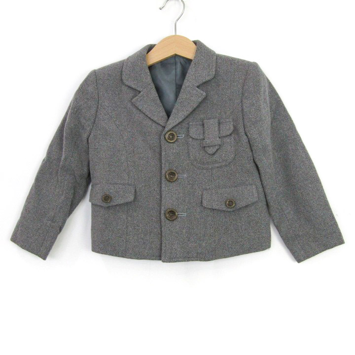 バブルブーン テーラードジャケット 未使用 ウール混 ブランド アウター 日本製 キッズ 男の子用 100サイズ グレー BABBLE BOON 【中古】