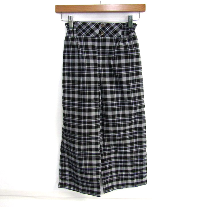 アナスイミニ ワイドパンツ ボトムス チェック柄 キッズ 女の子用 130サイズ 黒×グレー ANNA SUI mini 【中古】