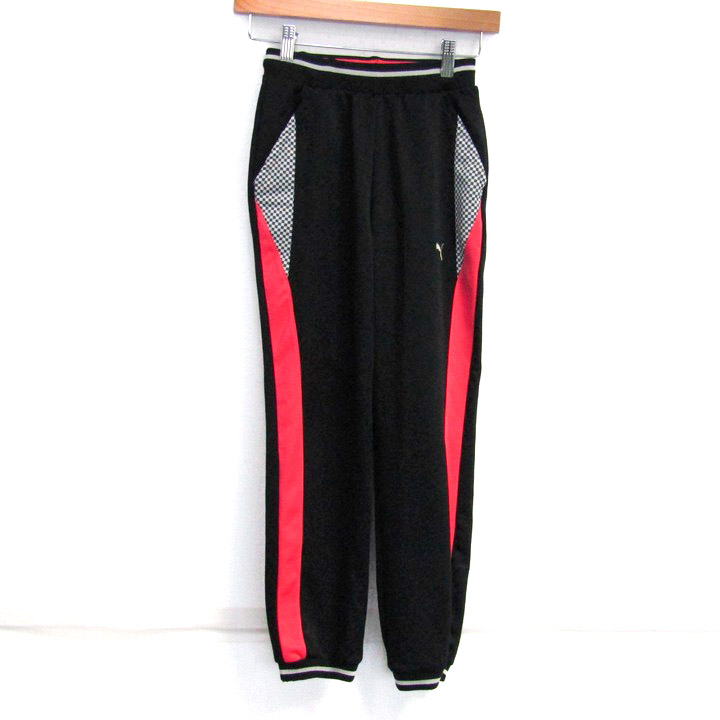 プーマ ジョガーパンツ ボトムス ジャージ スポーツウエア キッズ 男の子用 140サイズ 黒×ピンク×グレー PUMA 【中古】