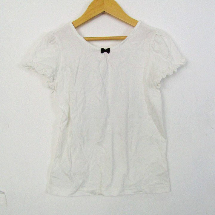 メゾピアノ 半袖Tシャツ トップス リボン パール キッズ 女の子用 130サイズ ホワイト Mezzo Piano 【中古】