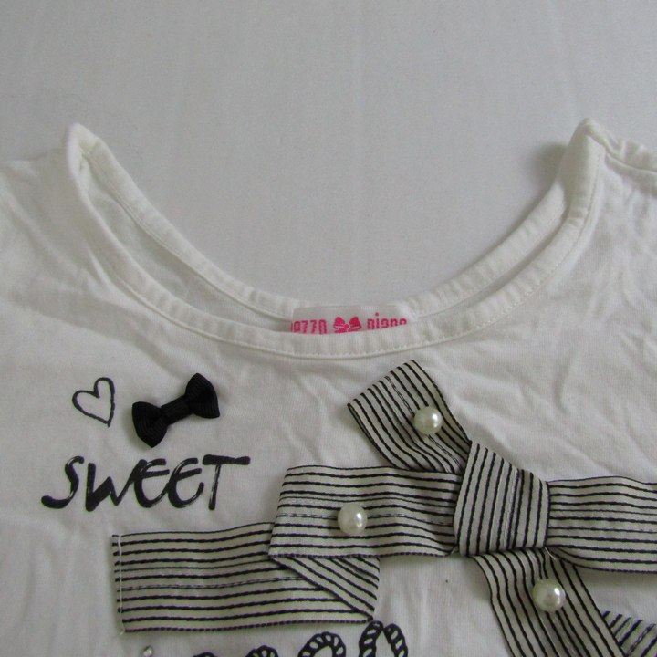 メゾピアノ 半袖Tシャツ トップス リボン パール キッズ 女の子用 130サイズ ホワイト Mezzo Piano 【...