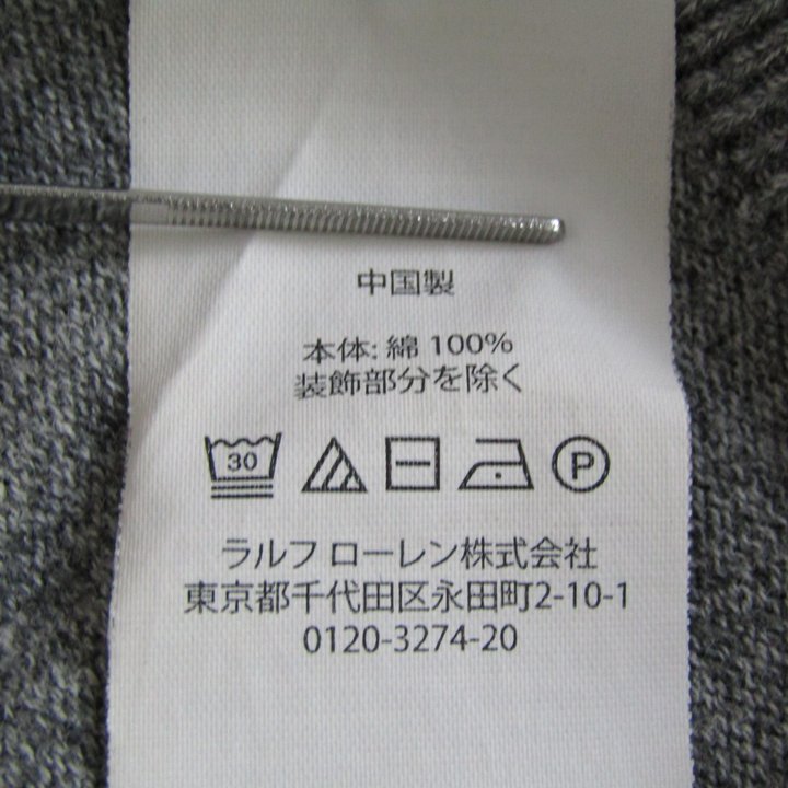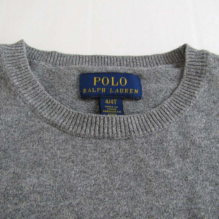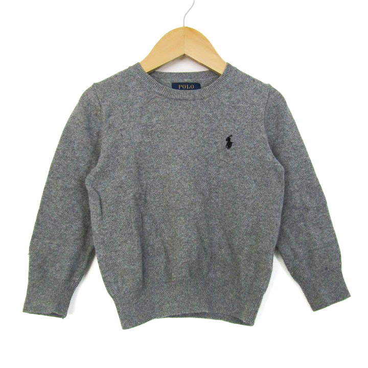 ポロラルフローレン セーター トップス 長袖 クルーネック コットン ニット キッズ 男の子用 4/4Tサイズ グレー POLO RALPH LAUREN 【中古】