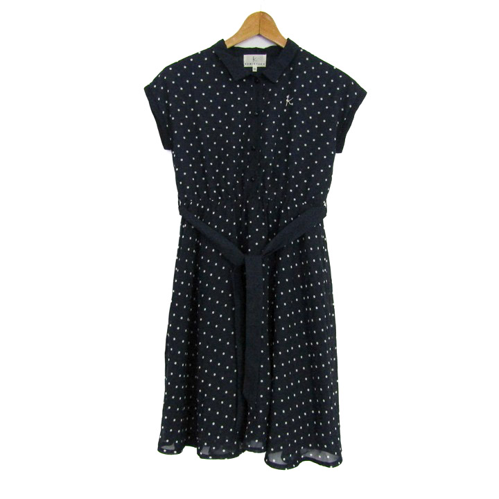 クミキョク シャツワンピース 半袖 ドット柄 トップス キッズ 女の子用 160サイズ ネイビー×ホワイト 組曲 【中古】