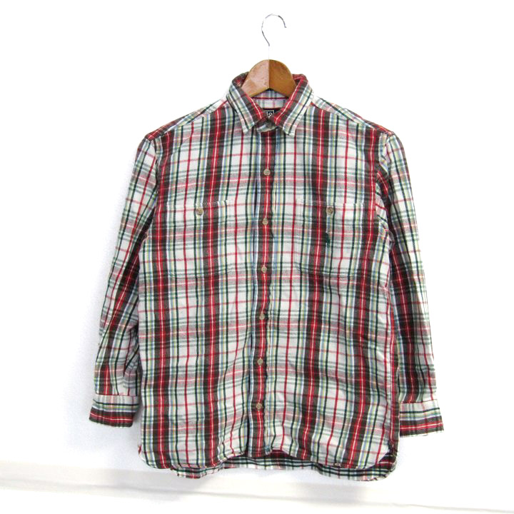 ポロバイラルフローレン 長袖シャツ チェック柄 トップス キッズ 男の子用 150サイズ ホワイト×レッド Polo by Ralph Lauren 【中古】