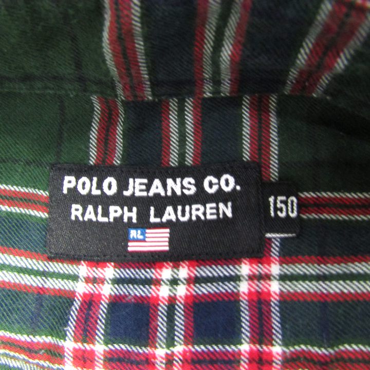 ポロジーンズ ラルフローレン 長袖シャツ チェック柄 トップス キッズ 男の子用 150サイズ グリーン×レッド POLO JEANS 【中古】