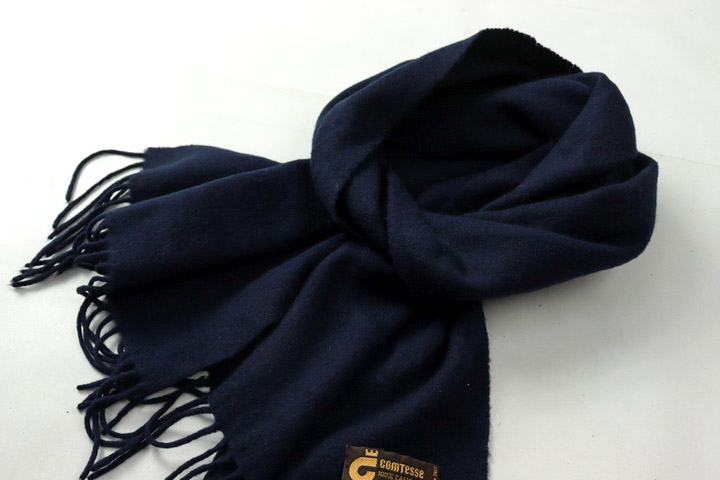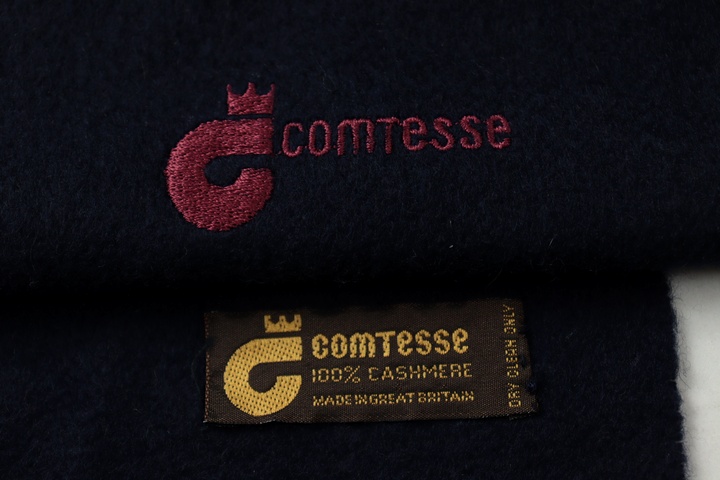 コンテス マフラー カシミヤ イギリス製 ブランド メンズ レディース ネイビー COMTESSE 【中古】