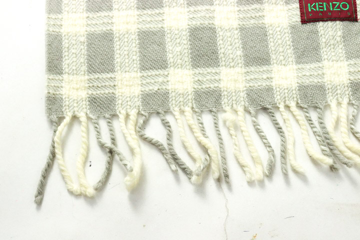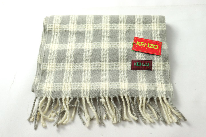 ケンゾー マフラー 未使用 チェック柄 ウール ブランド レディース レディース グレー KENZO 【中古】