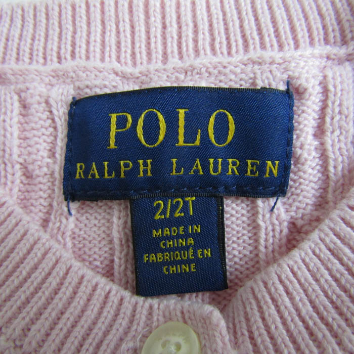 ポロラルフローレン カーディガン トップス 長袖 ケーブルニット キッズ 女の子用 2/2Tサイズ ピンク POLO RALPH LAUREN 【中古】
