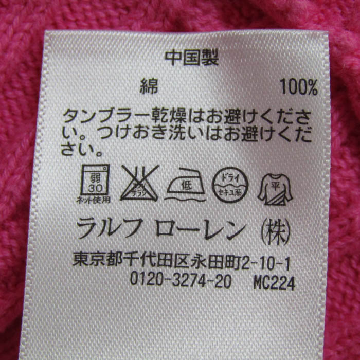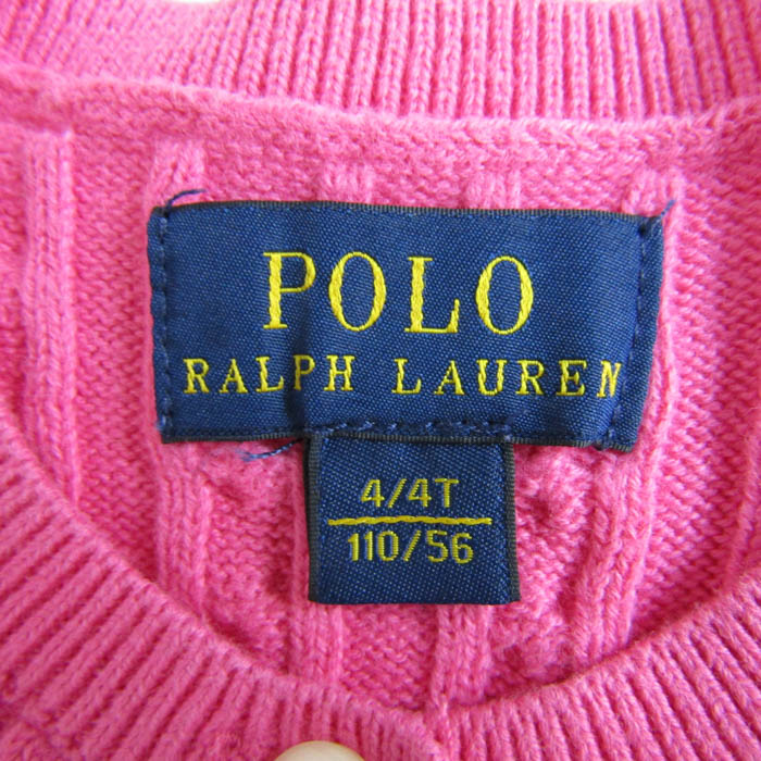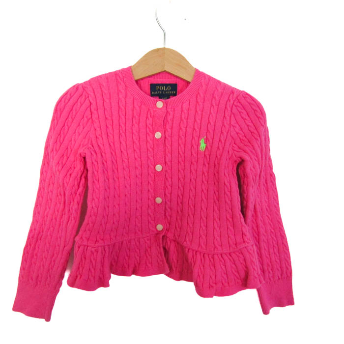 ポロラルフローレン カーディガン トップス 長袖 ケーブルニット キッズ 女の子用 4/4T 110/56サイズ ピンク POLO RALPH LAUREN 【中古】