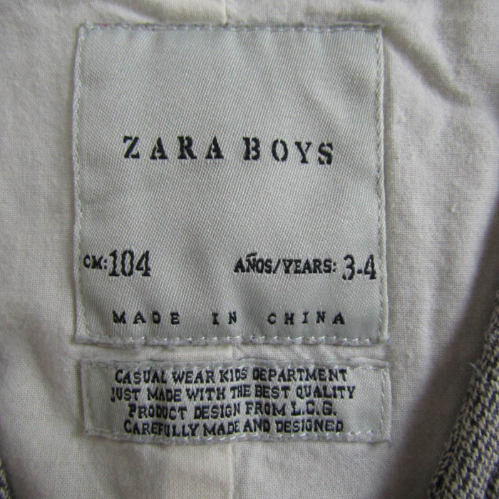 ザラボーイ ベスト ジャケット アウター ジレ キッズ 男の子用 104サイズ グレー ZARA BOY 【中古】