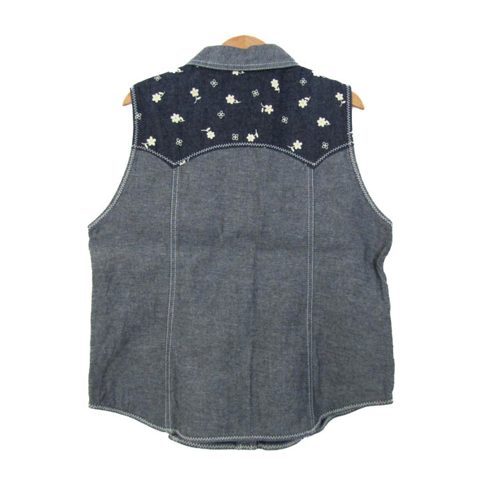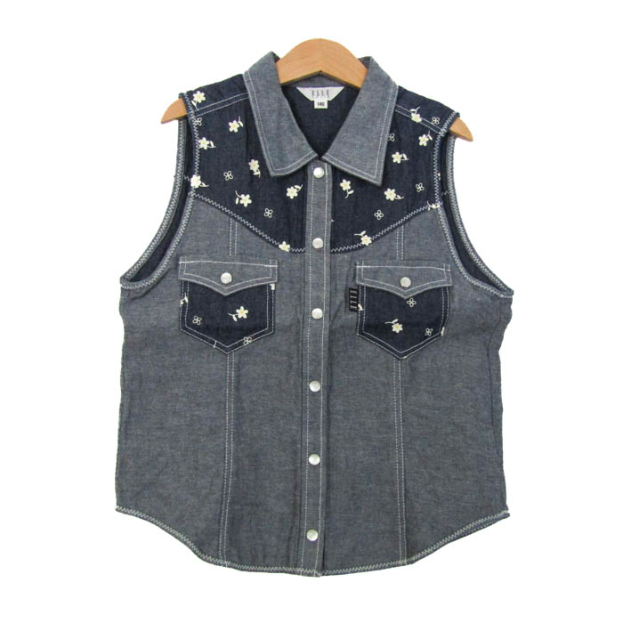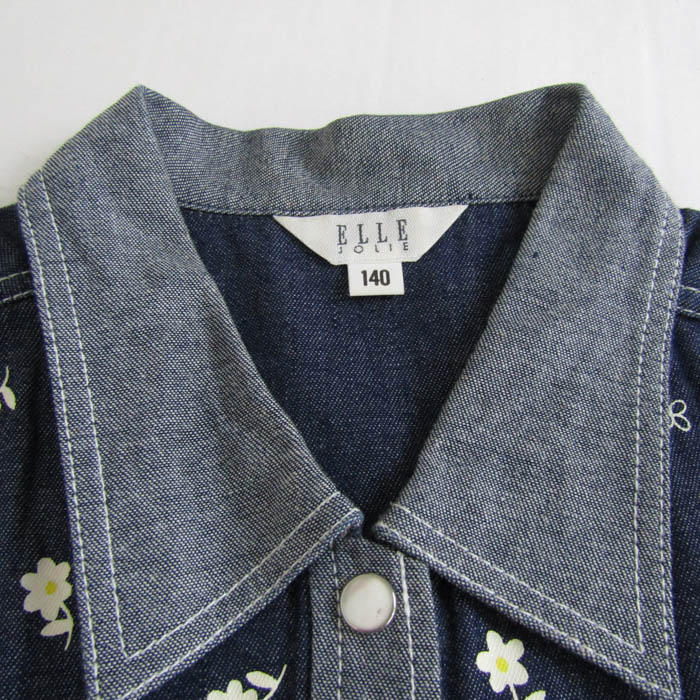 エルジョリー ブラウス シャツ トップス ノースリーブ 花柄 デニム キッズ 女の子用 140サイズ グレー×紺 ELLE JOLIE 【中古】