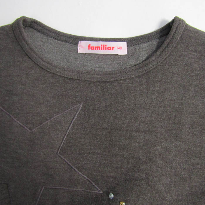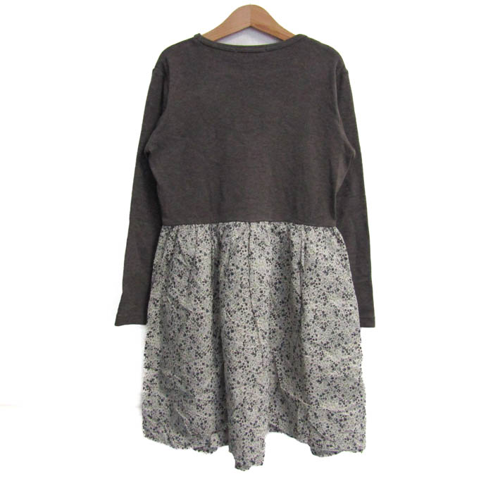 ファミリア 切替ワンピース トップス 長袖 花柄 キッズ 女の子用 140サイズ チャコール×グレー×白 Familiar 【中古】